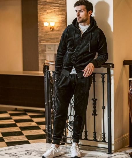 同デザインのパンツと合わせれば艶やかなセットアップスタイルに。