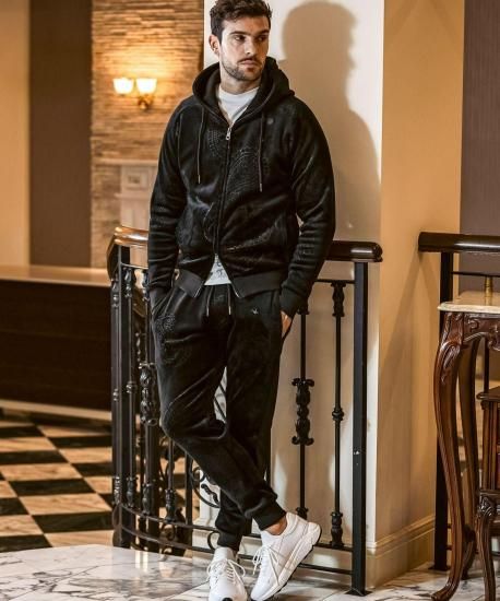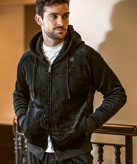 1PIU1UGUALE3 RELAX(ウノピゥウノウグァーレトレ リラックス)ペイズリーベロアジップパーカー